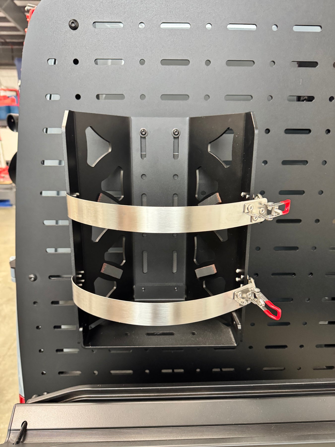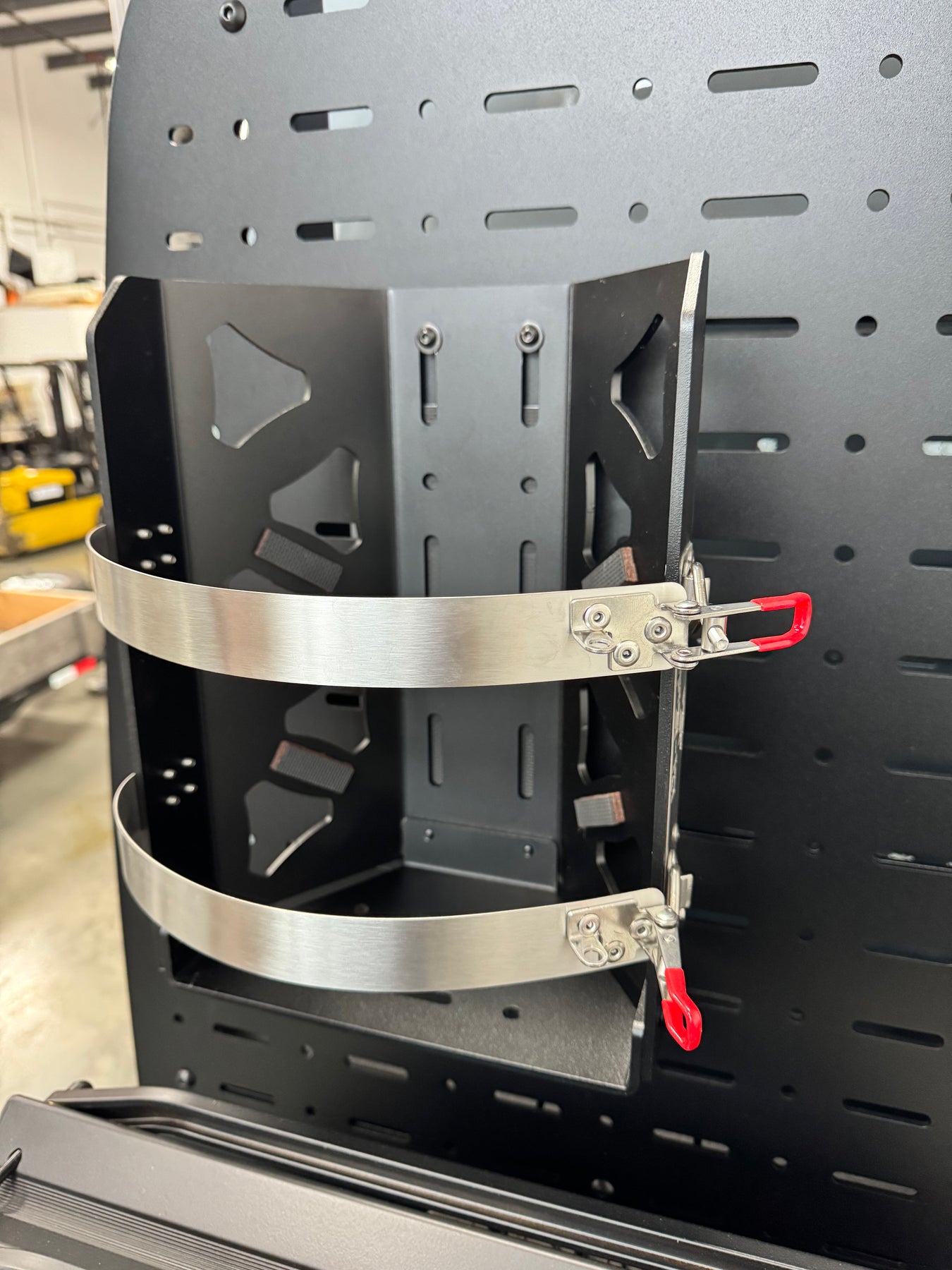 Multiple mounting holes allow flexible installation on racks, bumpers, or custom brackets, and lockable latches keeps your tank secure on any trail.